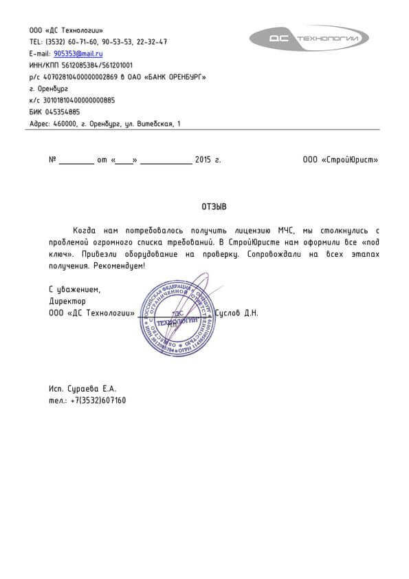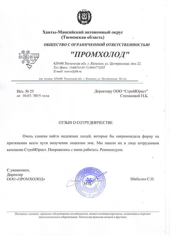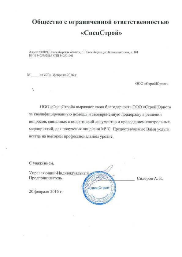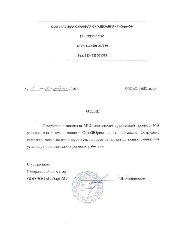 Отзывы клиентов "СтройЮрист" по лицензированию МЧС в Сыктывкаре